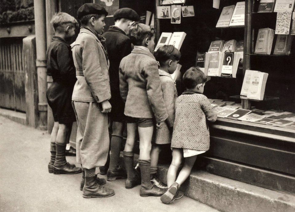 Fotografia Enfants regardant la vitrine d'un libraire, Paris, 1943 - Agence Roger Viollet